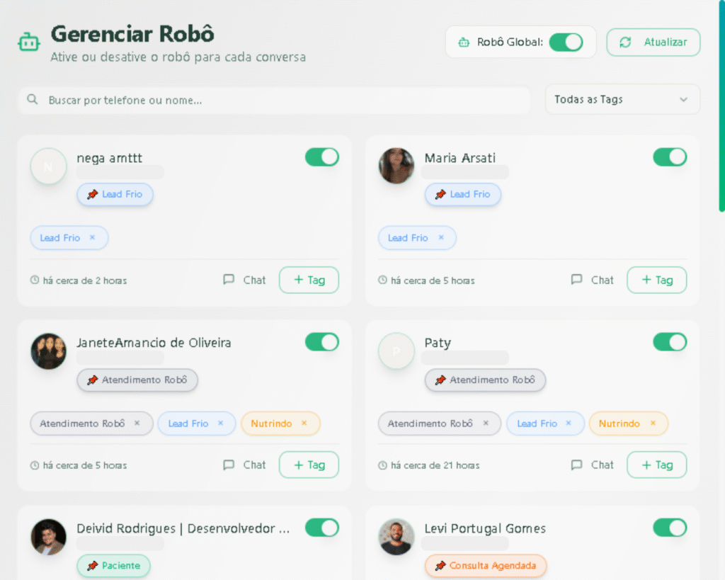 Configure robôs automatizados personalizados para engajar pacientes e aumentar conversões.