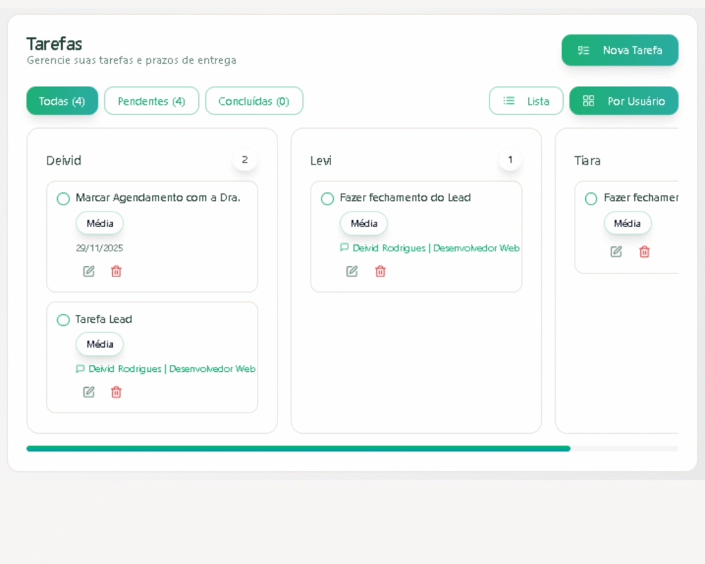 Organize sua equipe com sistema de tarefas, lembretes e acompanhamento de produtividade.