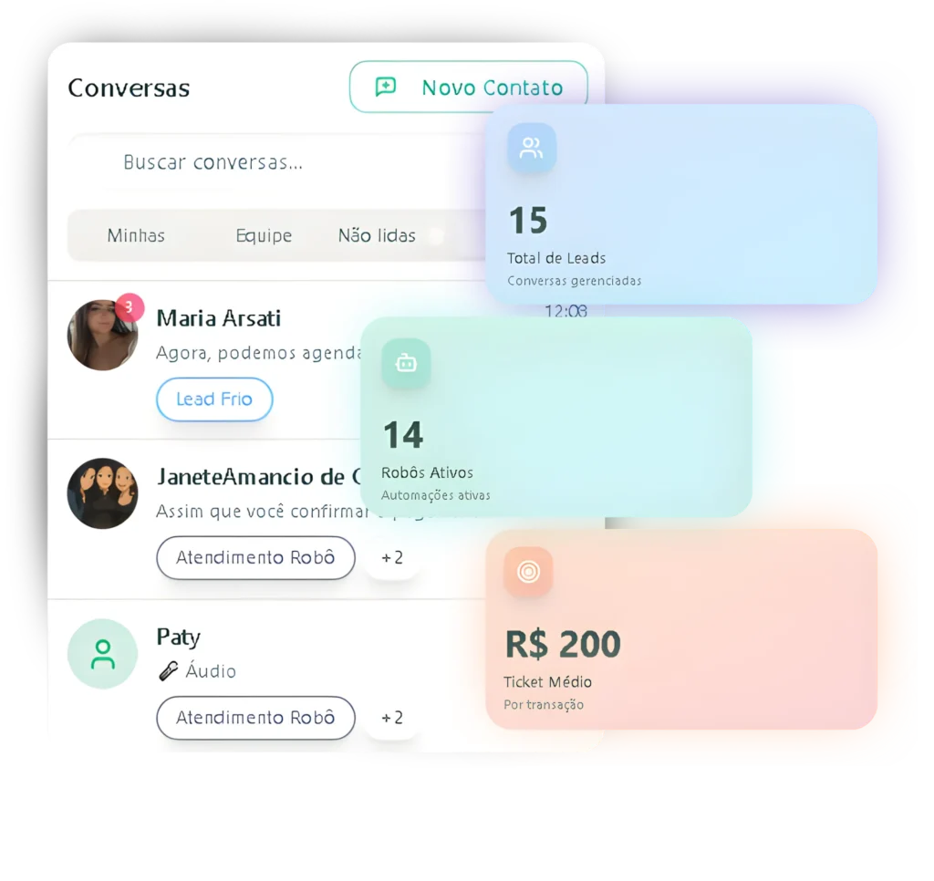 Centralize todas as conversas com pacientes em um só lugar, integrando WhatsApp, SMS e outras plataformas.